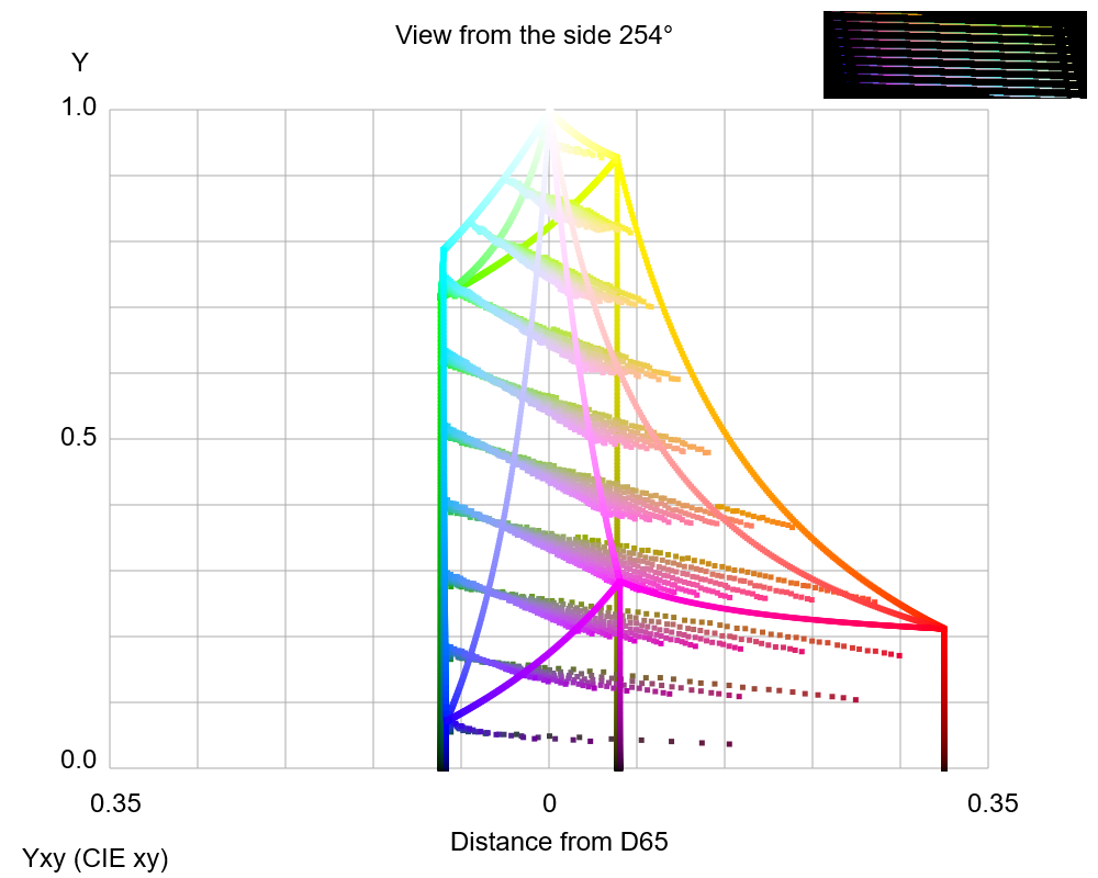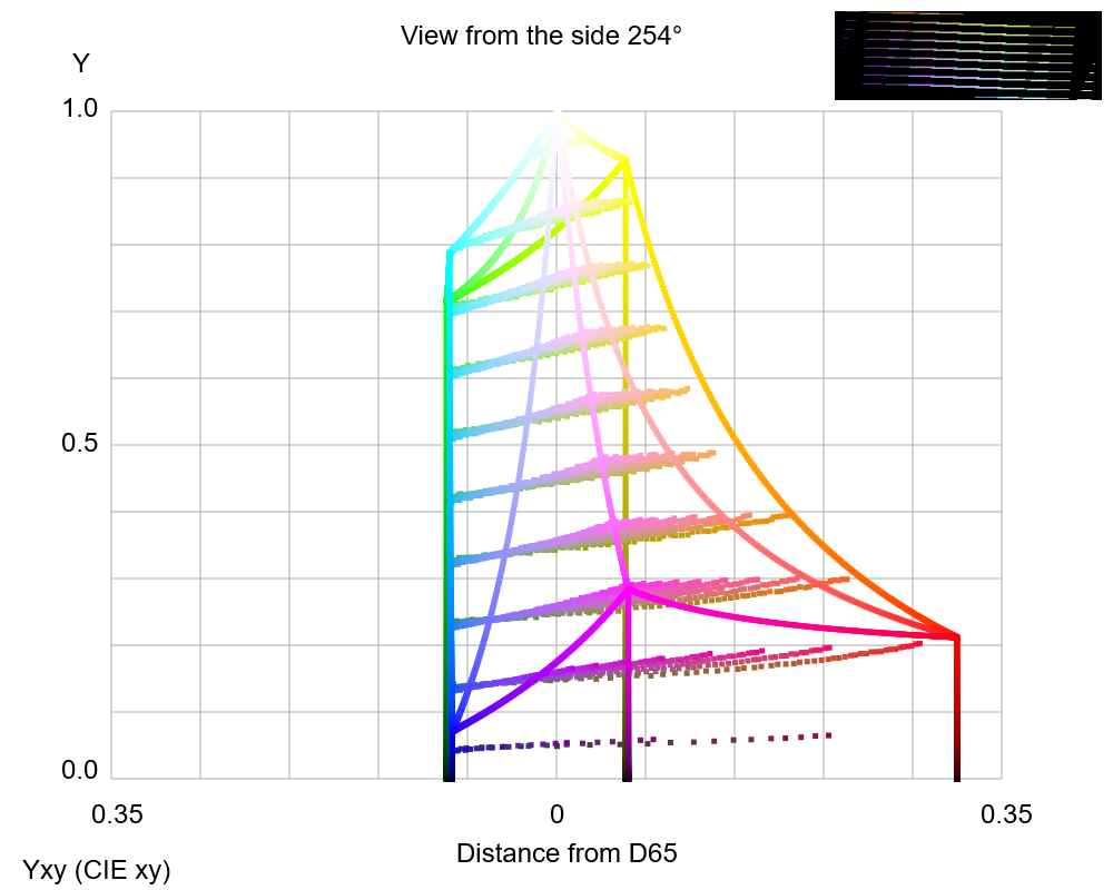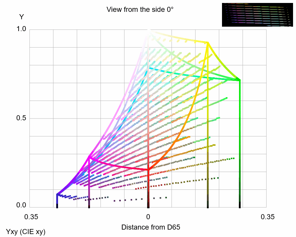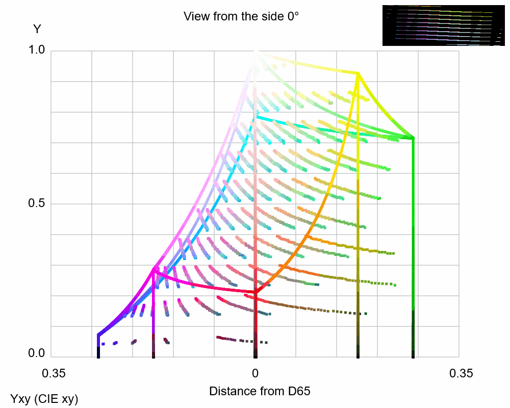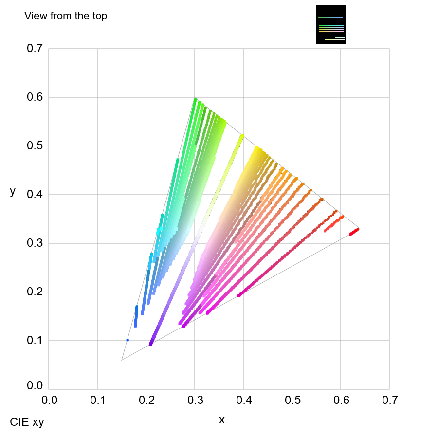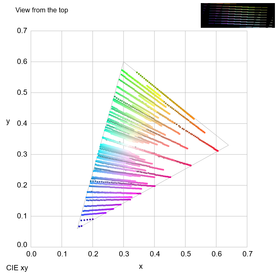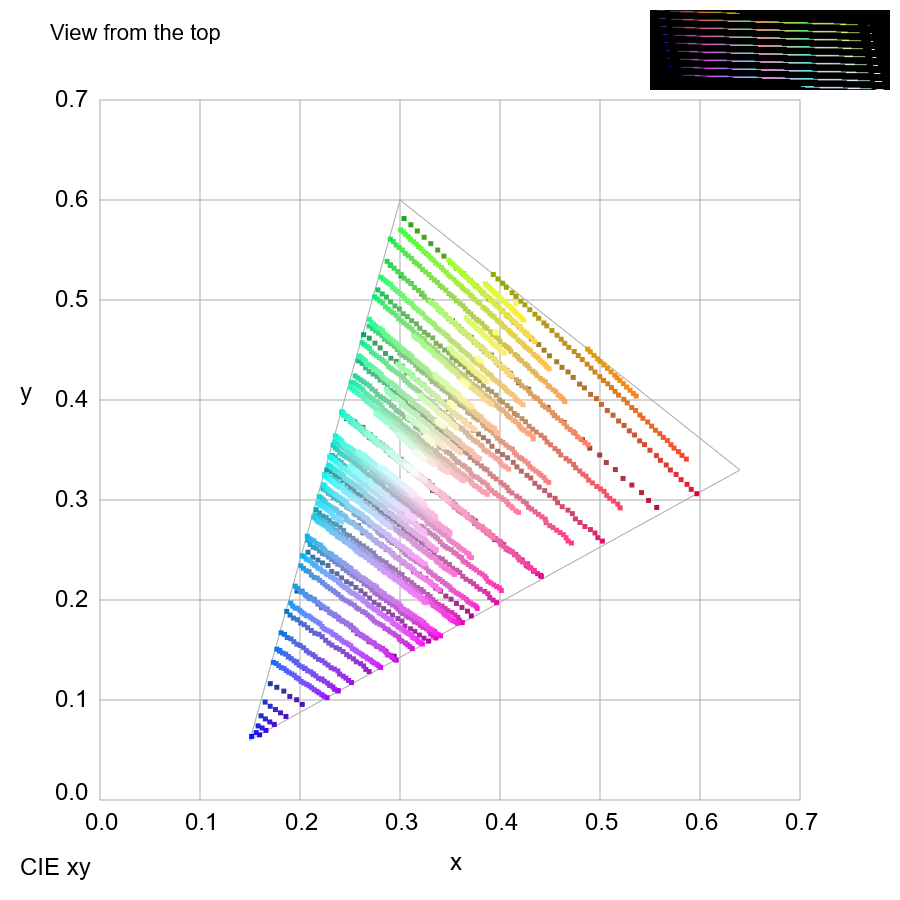 Color confusion loci for D-type dichromacy plotted on the CIE xy color space