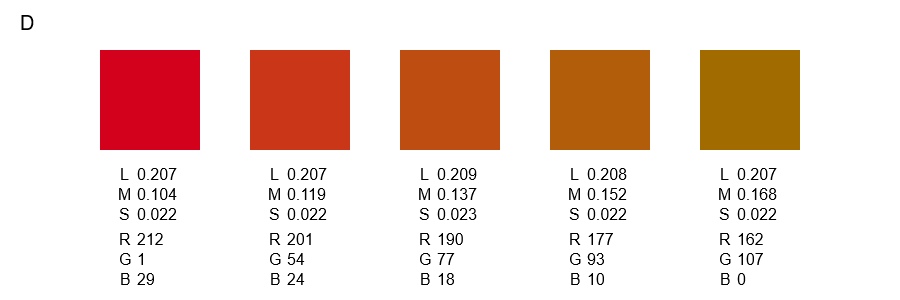 Color charts of color confusion loci for D-type dichromacy