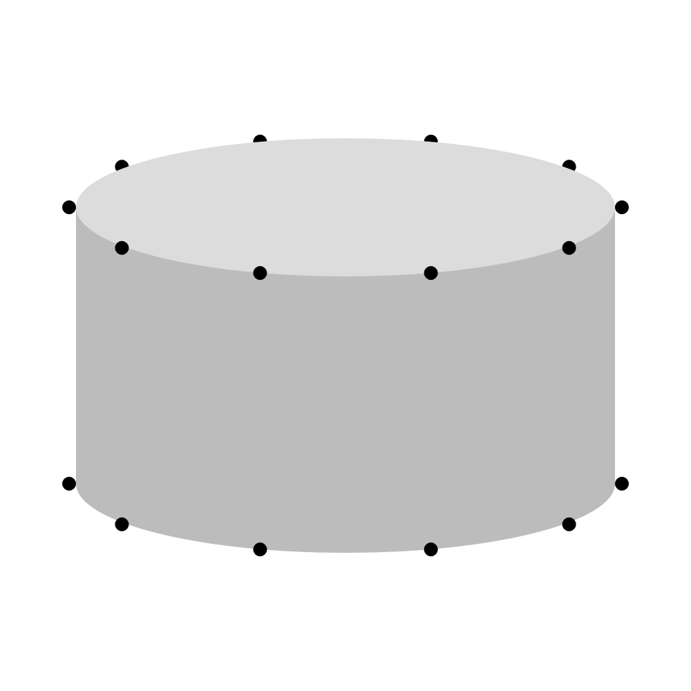 There are twelve dots at crosses, but only a few dots are visible simultaneously.