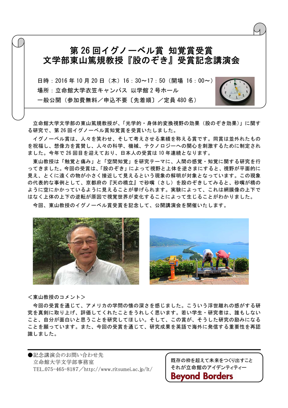 文学部東山篤規教授「股のぞき」受賞記念講演会