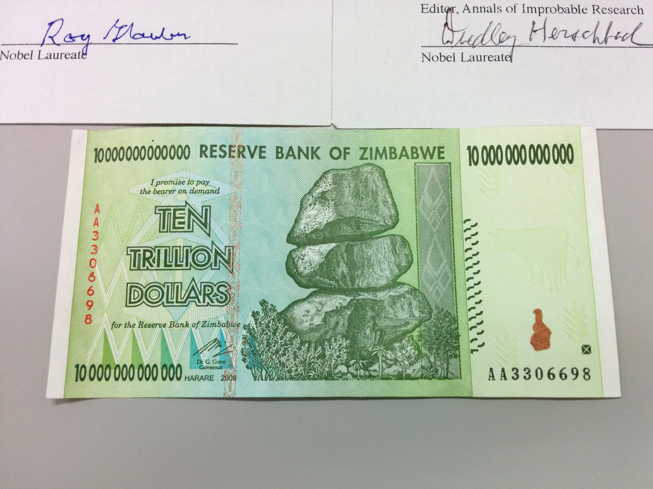 賞金の10兆ジンバブエドル