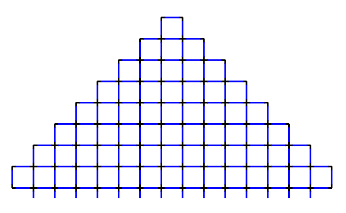 格子の交点に黄色い光が見えるが、実際にはこの図は青と黒と白だけでできている。