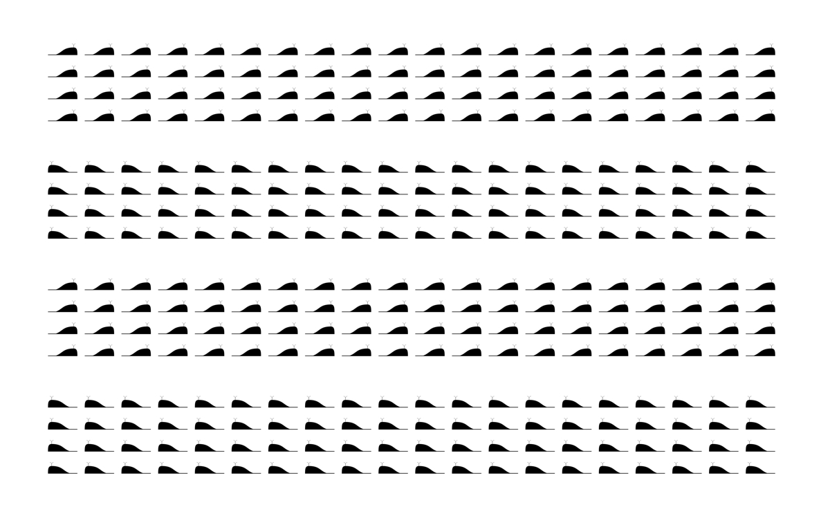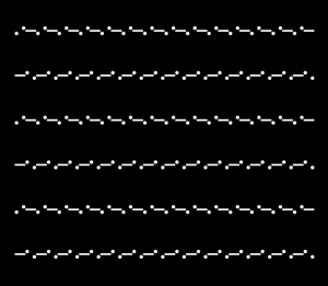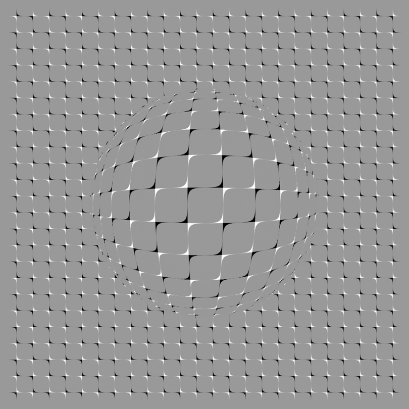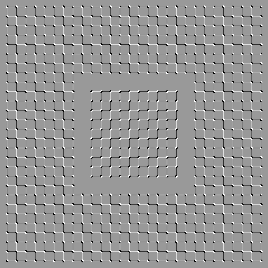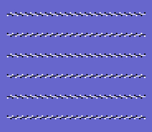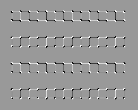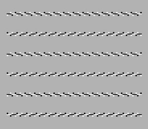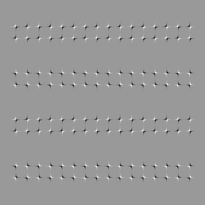 Each row appears to move. Although the four rows are horizontal and parallel to each other, the uppermost row appears to tilt to the right, and the second one to the left, the third to the right, and the lowermost one to the left.