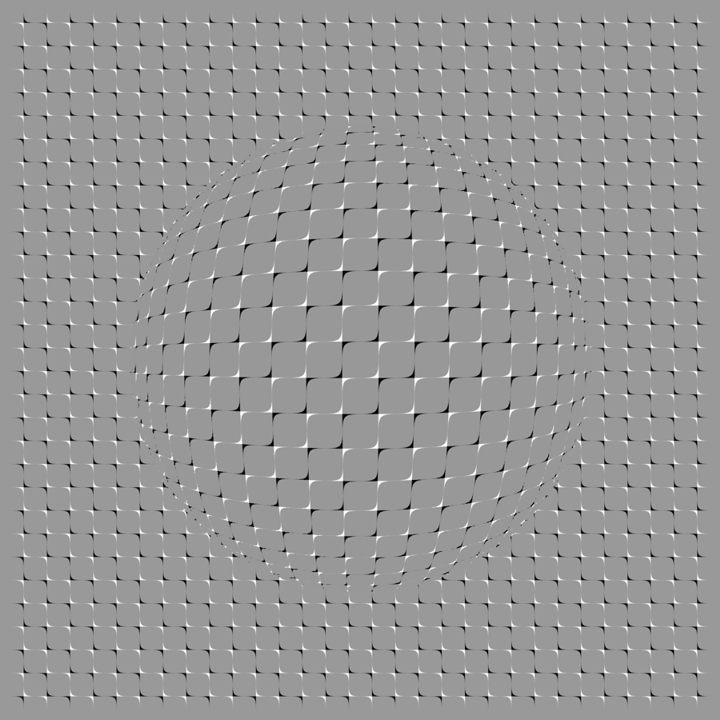 Each row appears to move. Although the four rows are horizontal and parallel to each other, the uppermost row appears to tilt to the left, and the second one to the right, the third to the left, and the lowermost one to the right.