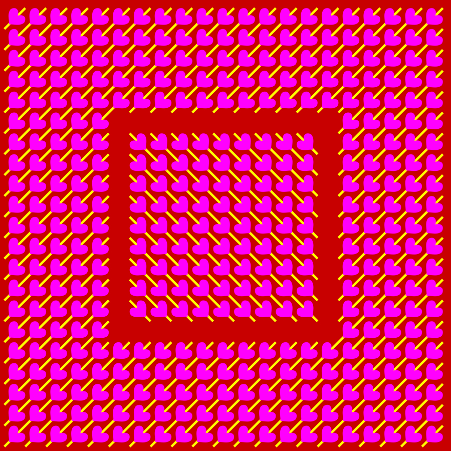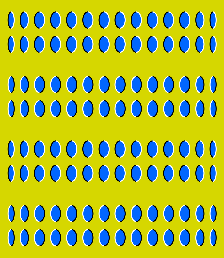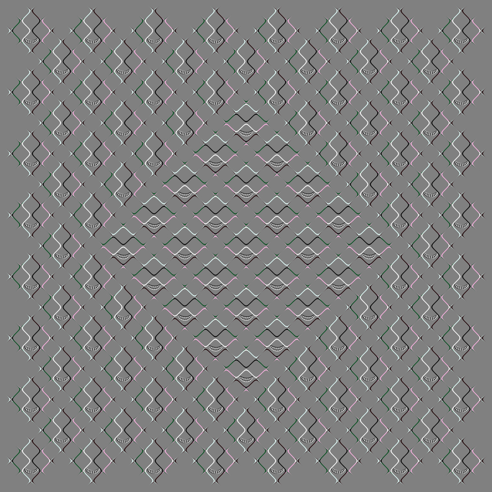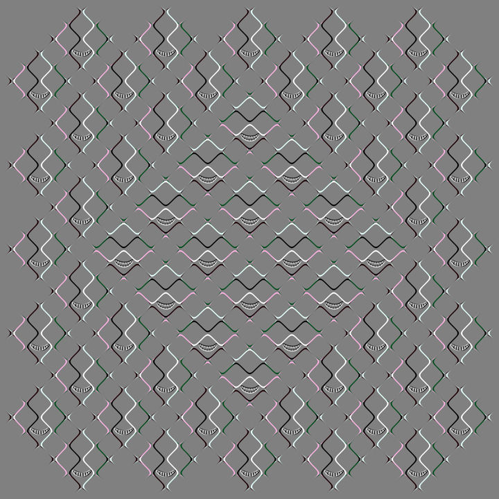 注意 このページは「動く錯視」(静止画なのに動いて見える錯視)の作品集です。現在まで錯視が人体に有害な影響を与える証拠はありませんが、車酔いなどを起こしやすい方はご注意下さい。