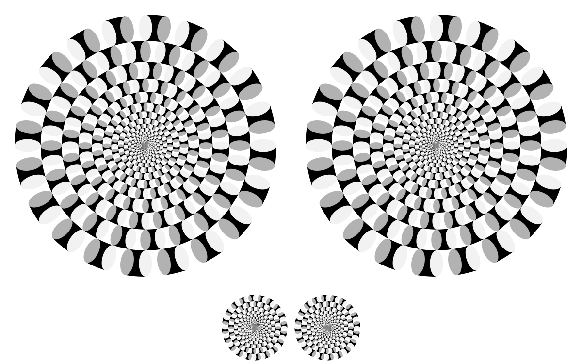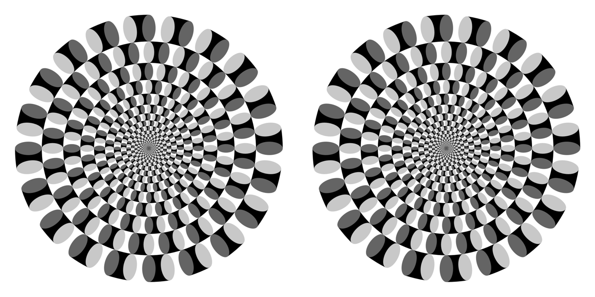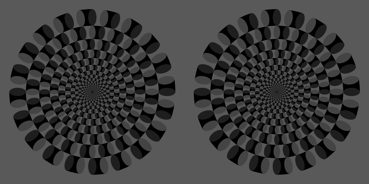 注意 このページは「動く錯視」(静止画なのに動いて見える錯視)の作品集です。現在まで錯視が人体に有害な影響を与える証拠はありませんが、車酔いなどを起こしやすい方はご注意下さい。