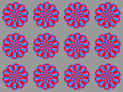 各円盤は、明るいところでは時計回り、暗いところでは反時計回りに回転して見える。
