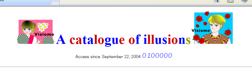 2004年1月12日(月) トップページに「目の錯覚」という言葉を入れた。検索エンジンで「錯視」という言葉を知らない人の便宜をはかることを目的とする。英語版でも「visual illusion」という言葉を加えた。
