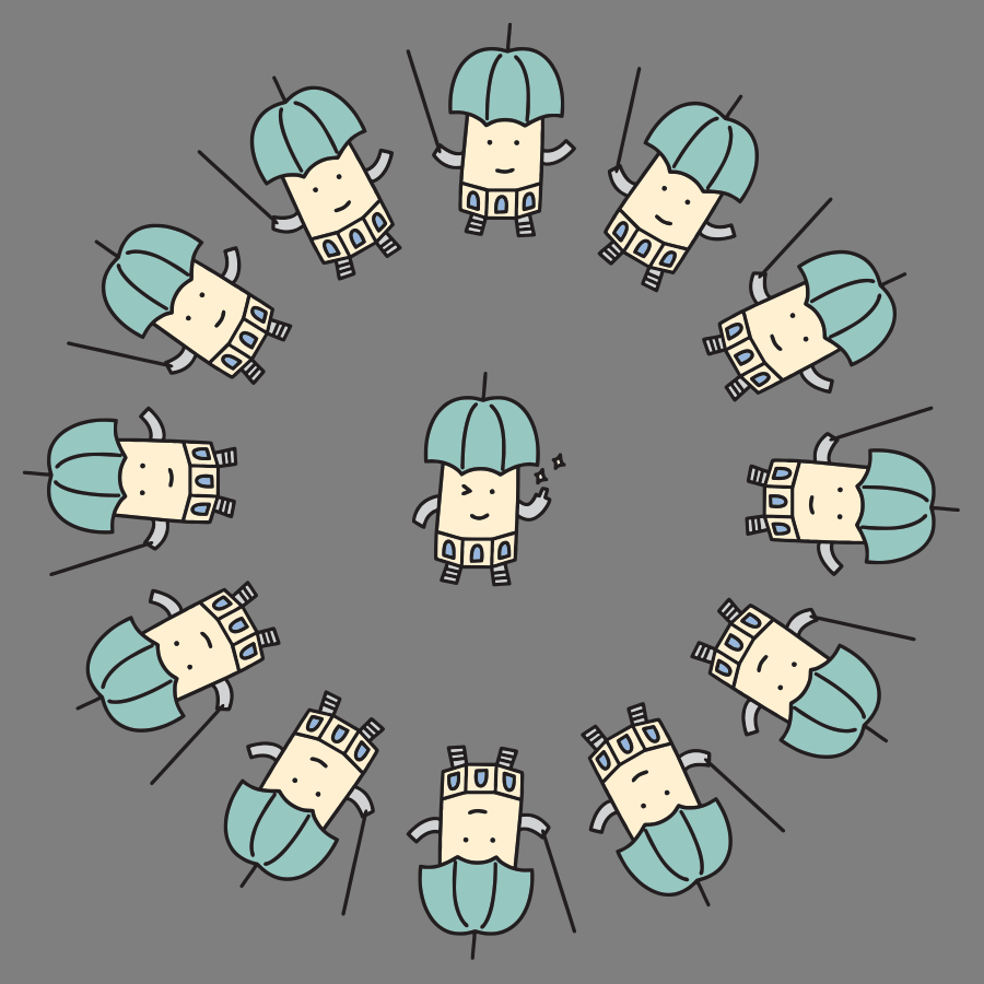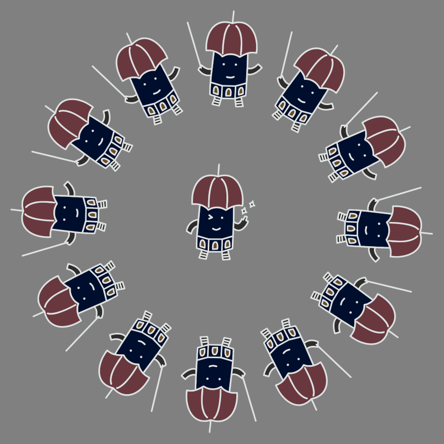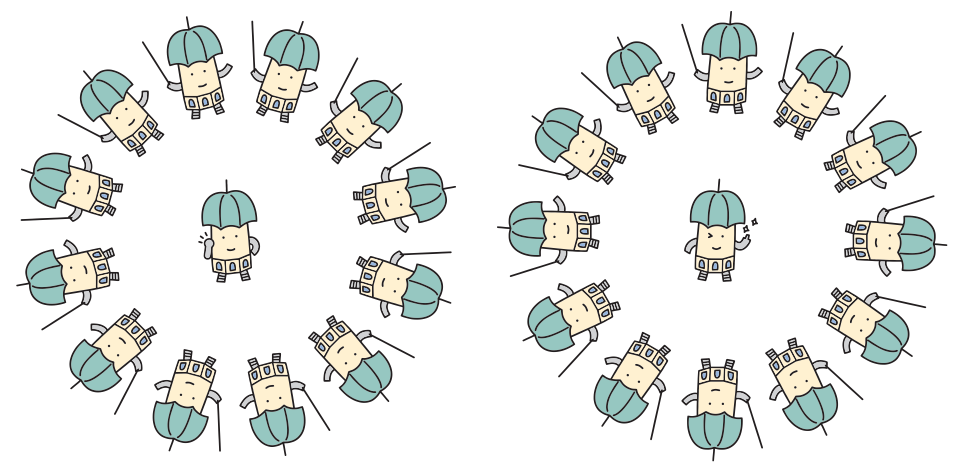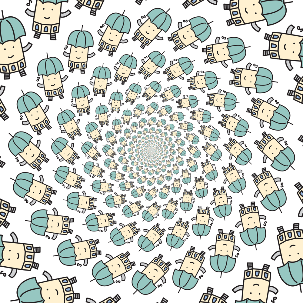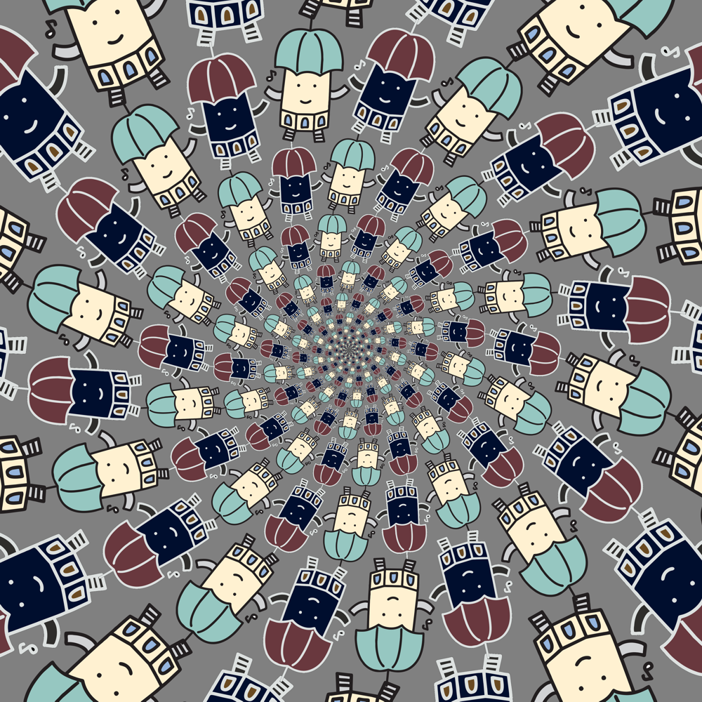 渦巻き錯視の配置であるが、あまり渦巻きには見えないかも。