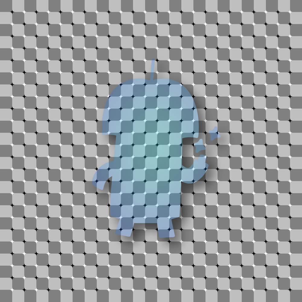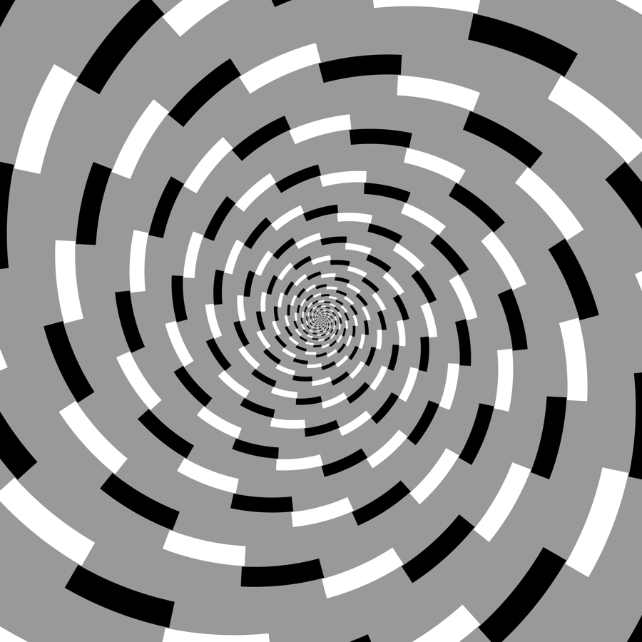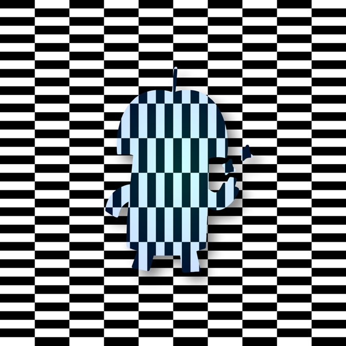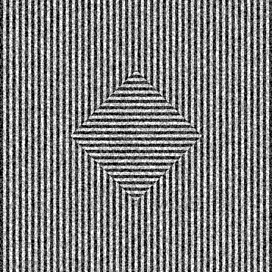 縞模様が動いて見える。めがねを上下させるとおもしろい。奥行き反転図形にもなる。