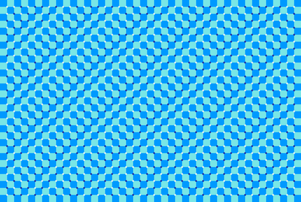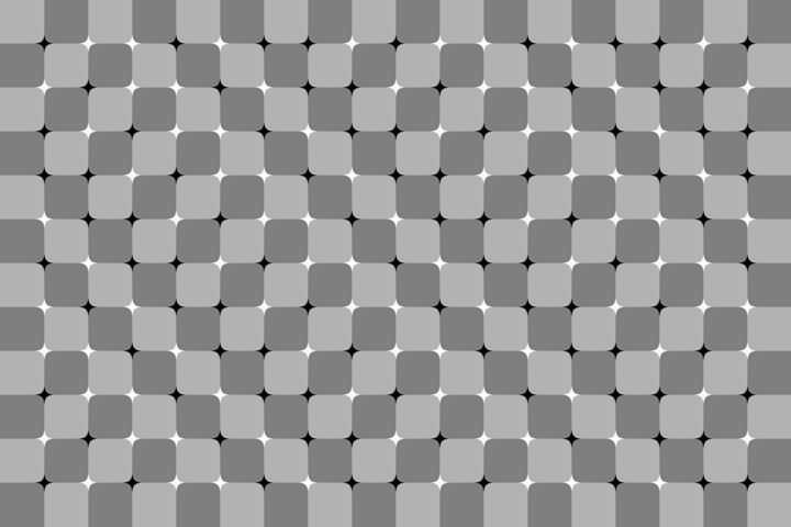 内側の正方形領域が動いて見える。内側の正方形領域が菱形に(垂直は右に、水平は左に傾いて)見える。