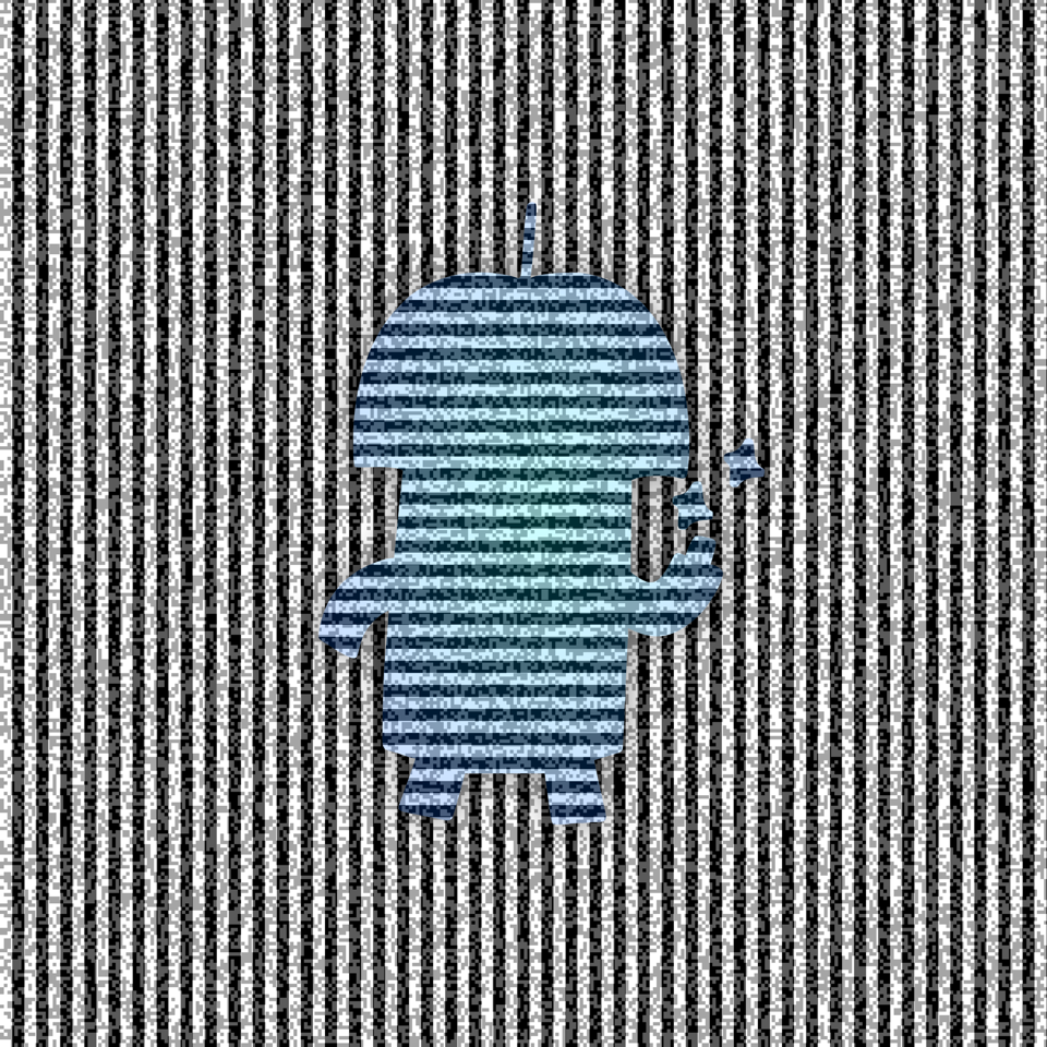 左の絵の髪と服は白く見え、右の絵では黒く見えるが、同じRGBの縞模様である。