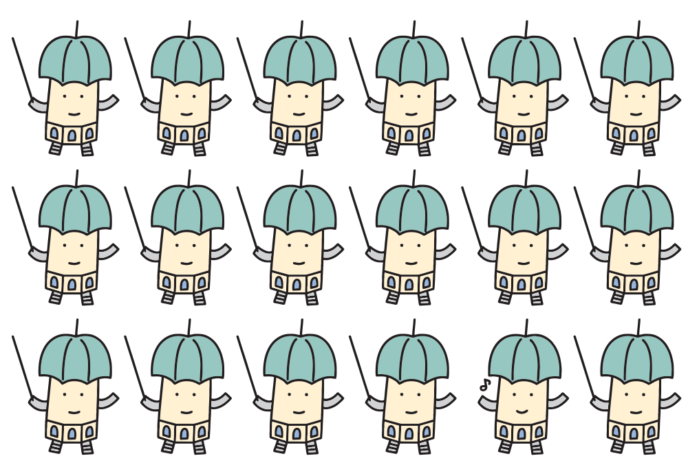 ひとりだけ変化しないりゅうちぃがいます。どこにいるかな?