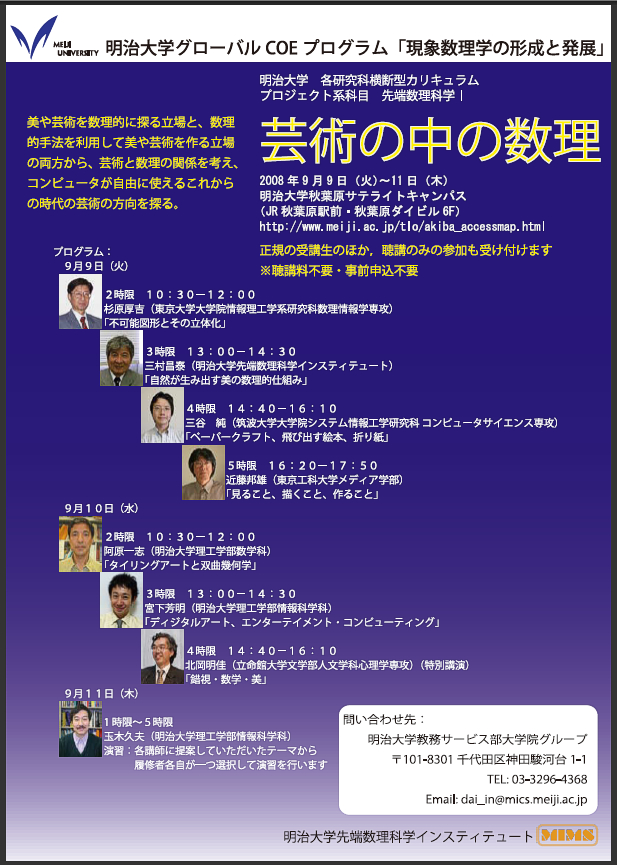 問合せ先:明治大学先端数理科学インスティテュートプロジェクト研究