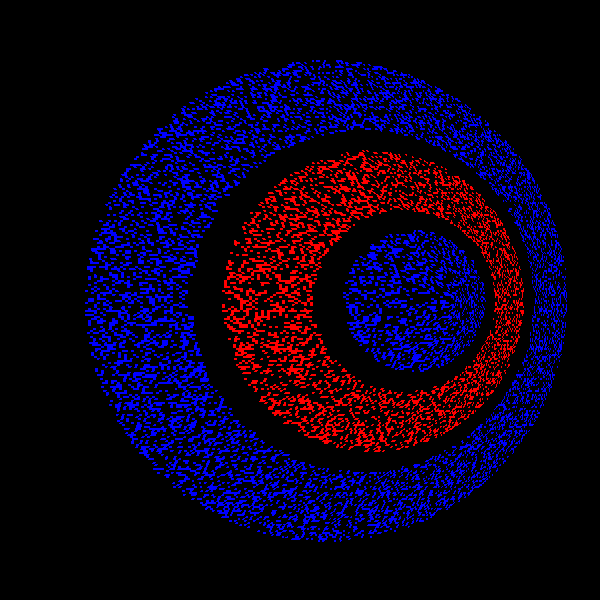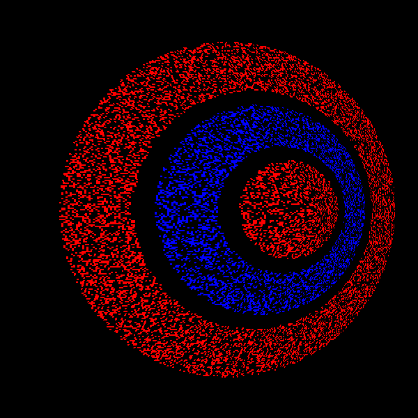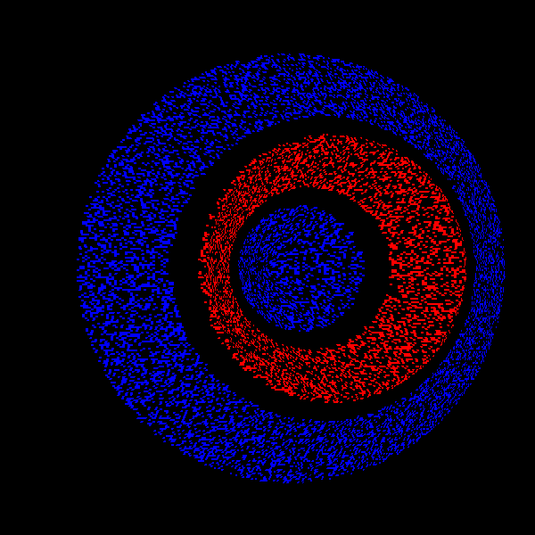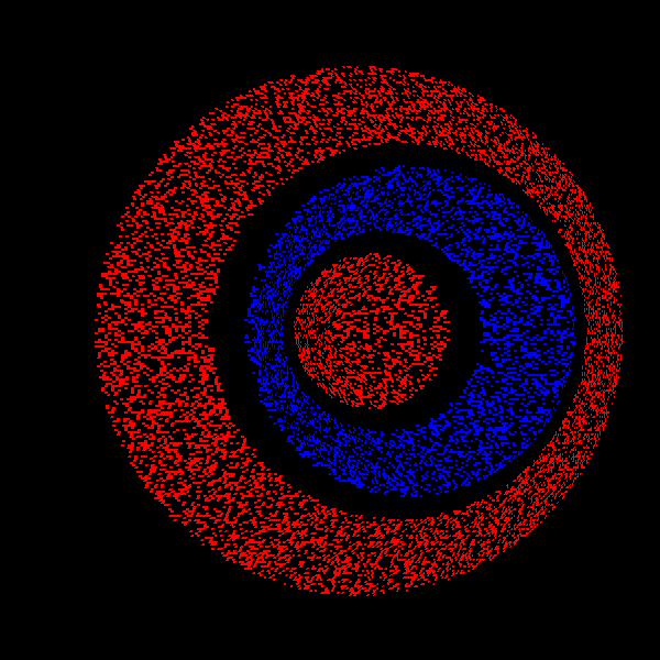 For many people, the effect is larger when they see the figures with a distance of more than 1 meter. In my knowledge, more than half observers see red in front of blue when the background is black, while about 20% see blue in front of red.