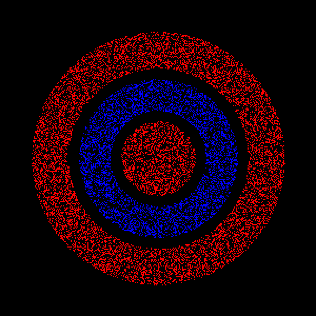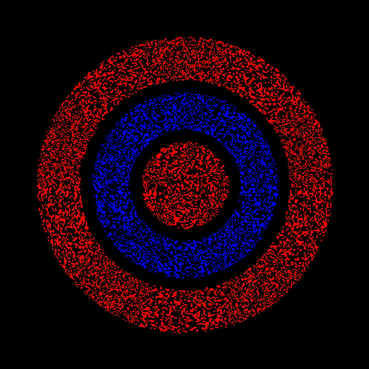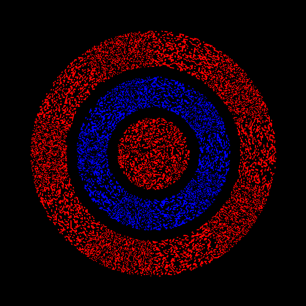 人にもよるが、1メートル以上離れて見た方が効果が大きい。6割の人は、黒背景で赤(長波長)が手前に見え、2割の人は青(短波長)が手前に見え、2割の人には色立体視は起こらないか、あるいは赤が手前に見えたり青が手前に見えたりするようである。教科書などによく書いてある「赤は進出色だから手前に見え、青は後退色だから奥に見える」という記述は、必ずしも正しくない。