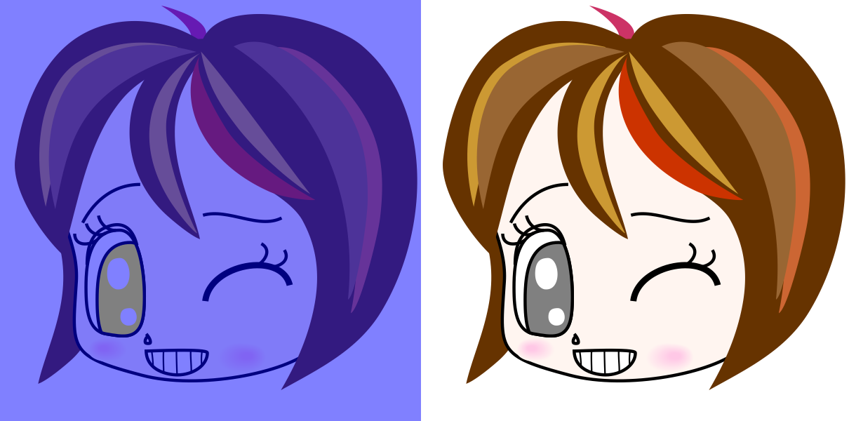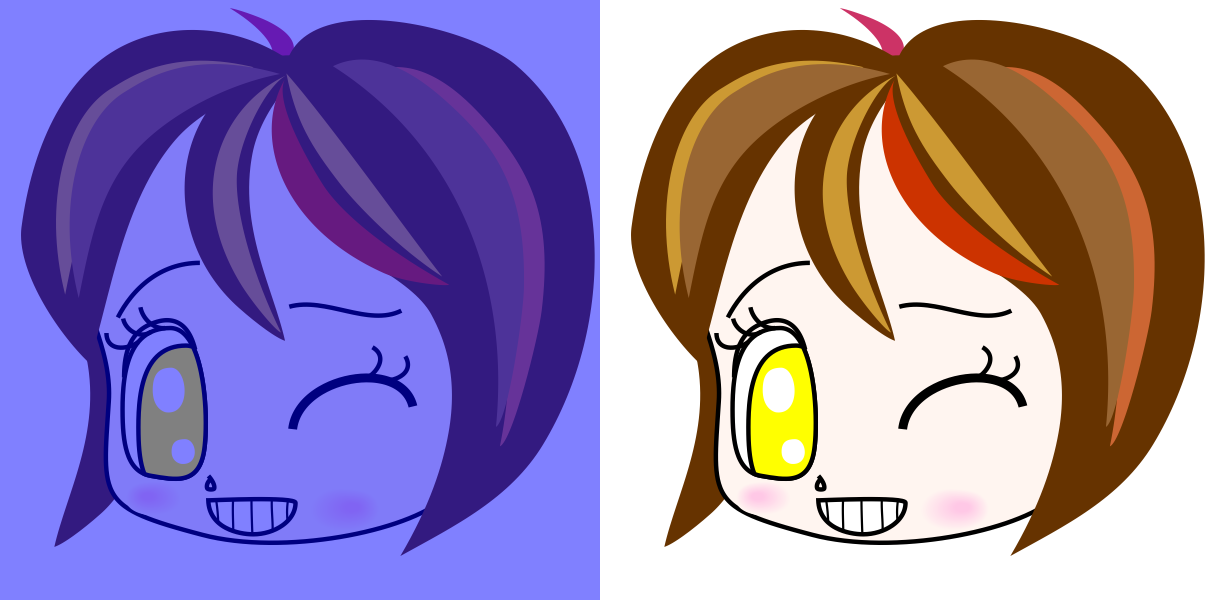 The eye in the left image appears to be yellowish but are gray (R128, G128, B128). The eye in the right image is yellow (R255, G255, B0). When these two images are binocularly fused and observed, it would seem that binocular rivalry (a visual field conflict) would occur because the colors are different between the two eyes, but this almost never happens.