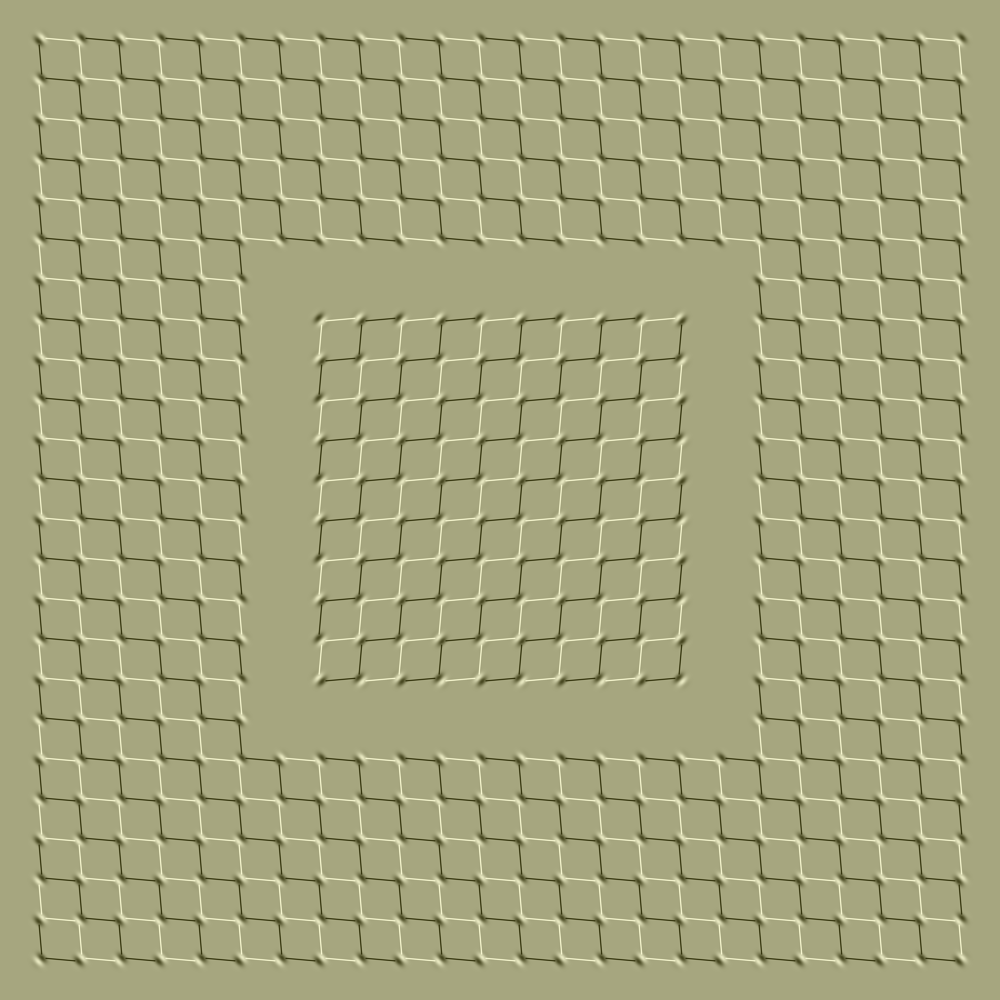 内側の正方形領域が動いて見える。内側の正方形領域が菱形に(垂直は右に、水平は左に傾いて)見える。