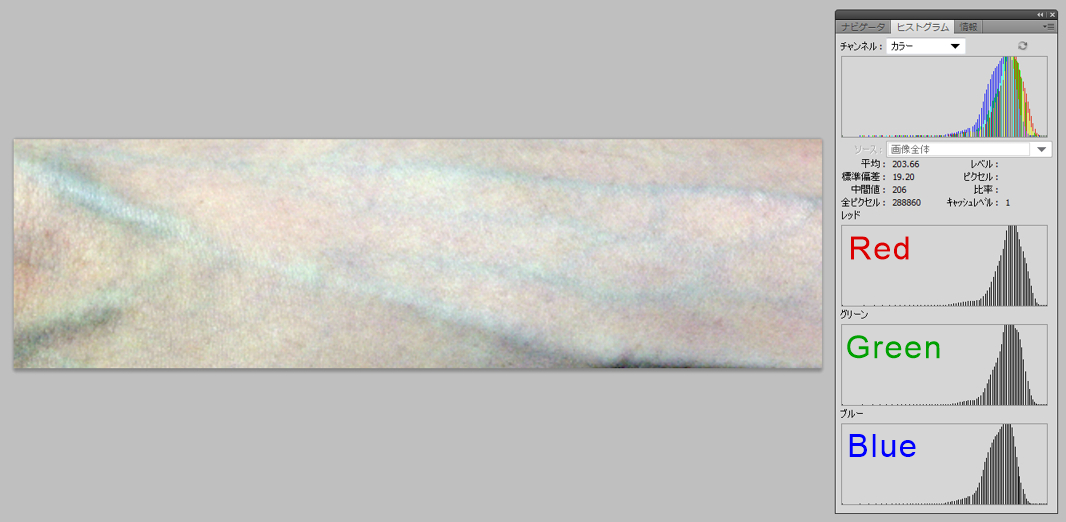 Vein images show unique histograms of RGB values, in which they lack high or low values.