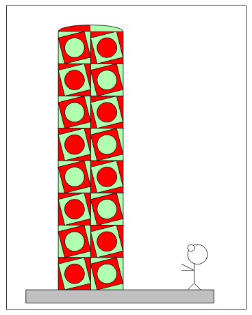 5つの列は平行であるが、上の列から順に、右左右左右に傾いて見える。動く錯視もあって、もぞもぞする。